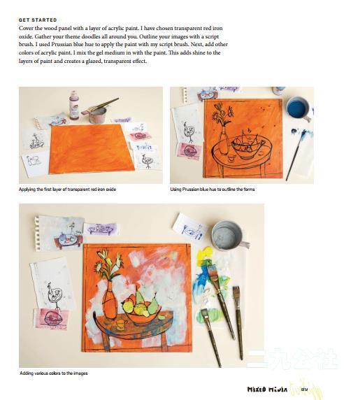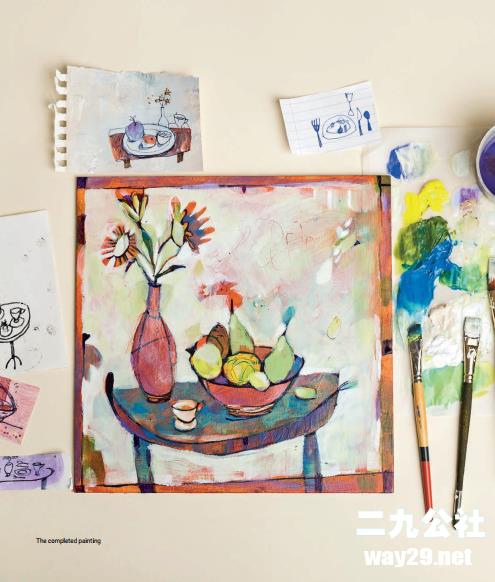 当你完成涂鸦作业时,请柬以铅笔开头。最终,你将学会如何调整大小并将这些涂鸦组合成更大的构图。然后,你将开始混合它与水彩画,最后,与丙烯酸涂料。