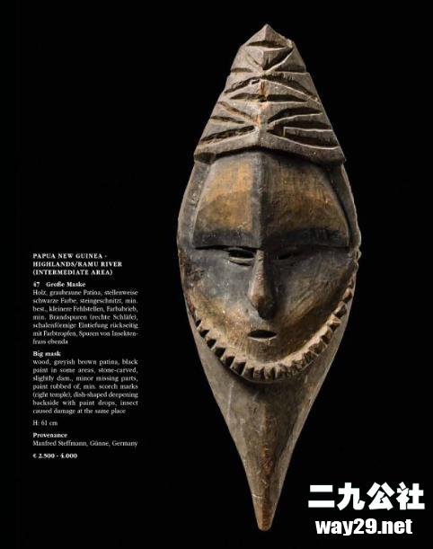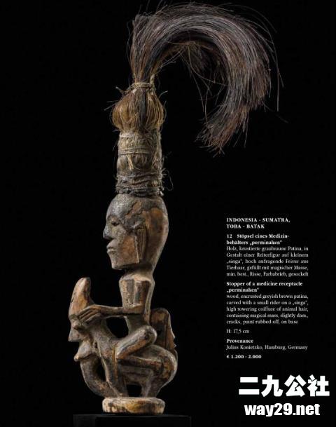 乌尔茨堡的部落艺术专家泽曼尼克·明斯特专门研究非洲、澳大利亚、大洋洲、亚洲和美洲的古老部落艺术。我们正在拍卖世界级的艺术品,如面具、人物、仪式用品、陶瓷、纺织品、原始货币、珠宝。在巴黎、布鲁塞尔、伦敦和纽约旁边的拍卖行